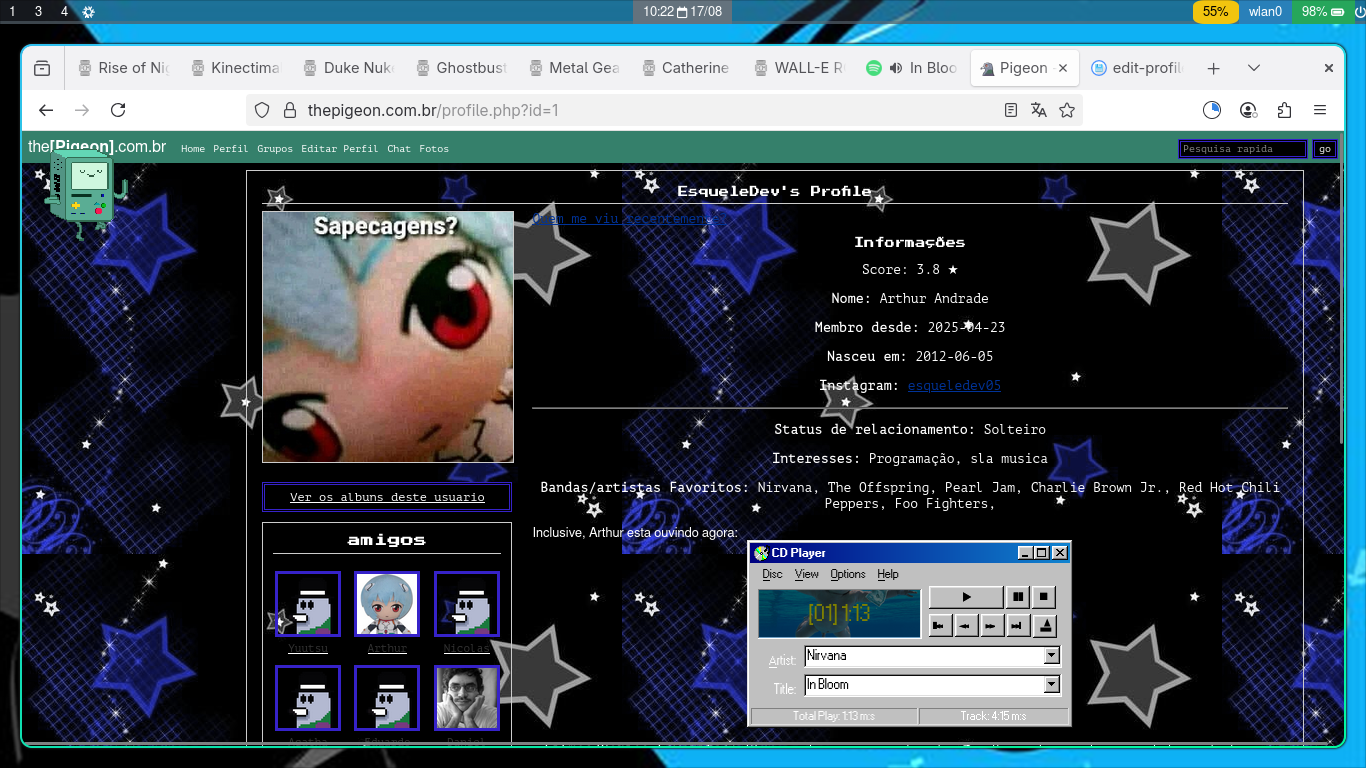 *Vinculando seu spotify quando você ouvir alguma musica ira aparecer no seu perfil, então so vincule se você não for estranho...